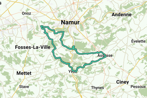 This route along the Château and gardens of Annevoie has as its starting point (nearest address): Fond de Malonne, 5020 Namur. Route statistics: The total elevation gain is 922 meters. The maximum incline is 11.29%, and the average gradient is 1.58%. This route is an ideal training route in wintertime during dry weather.