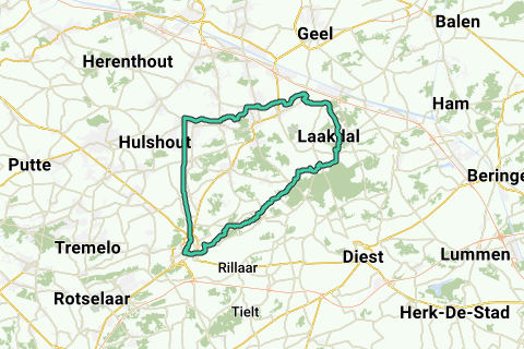 Start and endpoint of the route: Goorstraat, 3201 Aarschot. General difficulty level of this route: 53/100. A route for the average cyclist.
