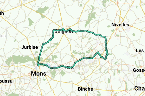 Start address of the route: Rue Sainte Catherine, 7170 Manage. The route passes by the following interesting points, among others: Manage Station (station), Neufvilles (municipality), Ecaussinnes-Lalaing (municipality), Church of Feluy (°1177) (church).