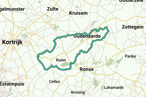 Starting and ending point of the route: Nukerkeplein, 9680 Maarkedal. Maximum gradient: 5.97%. Not for softies. Steep climbs.