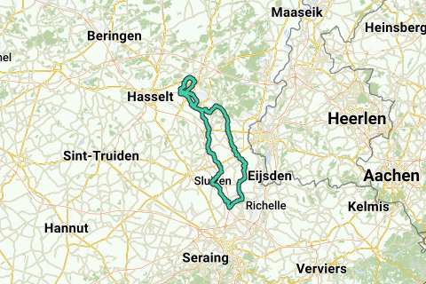 Boxbergheide Genk- De Maten- Diepenbeek- Schoonbeek- Bilzen- Alden Biezen- Rijkhoven- Membruggen- Genoelselderen- Millen- Sluizen- Glooien- Fexhe Slins- Houtain St. Simeon- Bitsingen- ZICHEN ZUSSEN BOLDER- Heukelom- Vlijtingen- Rosmeer- Mopertingen- Eigenbilzen- Munsterbilzen- Schoonbeek- Diepenbeek- Termien- Boxbergheide Genk.