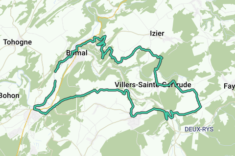 Bomal - Route 6 - Aisne Valley. 27.5 km of which 20 km outside the forest and 7.5 km in the forest. Quite a challenging route with 480 meters of elevation and a maximum incline of 15%.