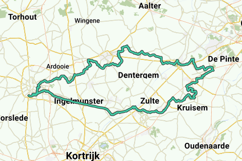 We start in Roeselare and ride along farm paths towards 't Veld in Ardooie, from where we head to Pittem. We leave Tielt to the left but take the Poelberg into account. From here we ride to Aarsele to cross the Leie and reach Deinze via a fork in the Leie. We head towards Astene, and pay special attention to the beautiful backdrop, with the old silo and Sashuis of Astene being the last landmarks. Now we go to the Hospice forests, cross the E17 and head towards Nazareth. We ride past Lozer on small paths and return home via the Lozer forest.