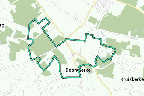 Departure in the village of Doomkerke, a relatively young parish founded in a short time by the ambitious Pastor Doom in the mid-nineteenth century. You can park on Brandstraße, between house numbers 16 and 18. Follow the junctions of the Bulskampveld hiking network. Bulskampveld used to be a vast heathland, but now you will find forests, nature reserves, farmland, and castles here. Directly after the parking lot, turn right following the signs to the landscape park Disveld. The cobblestone path runs around the back of the church. After a few zigzags, take the narrow path on the right at the end of the stones. You are now in the hiking network. After a few hundred meters, you will see the first signage towards junction 70. Follow the forest path to the right and turn left almost immediately onto Krommekeerstraße at the country road. At junction 70, go right and you will enter the diverse Vorte forests. Head towards junction 71, where you take the left path towards junction 72. At Kruisbergstraat, you turn briefly to the right and immediately left at junction 72 towards junction 69. This will bring you into the Pfarreiveld forest. After a while, you will pass a nice pond and picnic area. Once out of the forest, at junction 69, turn right and continue for 200 meters to junction 67.