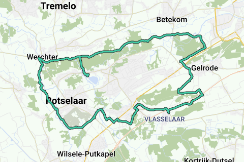 Route in the Hageland, starting at the Plas in Rotselaar. Quite challenging, so not flat. Various tourist attractions, but above all enjoy the natural diversity and the hilly landscape of the Hageland.