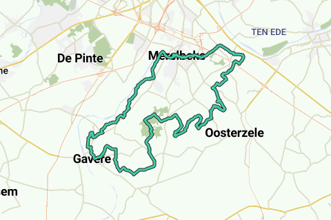 A route from 'Tourism East Flanders' that connects Merelbeke, Melle, Oosterzele, and Gavere. Start and parking at the Ter Wallen sports center, Sportstraße Merelbeke. Hilly landscape with some short climbs like the Asselkouter (after 17 km) and the Molenweg on cobblestones (after 25 km). Good signposting and a nice ride.