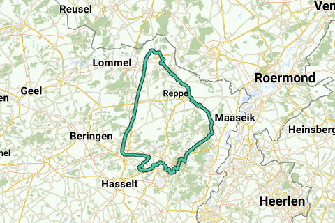 From Middenkruis 20, 3600 Genk Boxbergheide, Belgium to CMine Winterslag- As Kolenspoor- Dilsen Canal to Tongerlo- Opitter- Bree- Bocholt- St Huibrechts Lille- ACHEL- Great Heide- Neerpelt- Cycle path to Helchteren- Cycle path to Zonhoven- Bokrijk- Genk Boxbergheide.