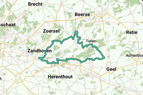 Tour from Geel-TenAard (sas 9) through Lichtaart, Herentals, and Grobbendonk to Viersel. On the way back, you pass through the Große Nete, Grobbendonk, Herentals, and Sint-Jozef Olen.