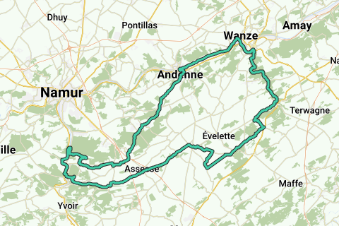 Beautiful walk that will lead us over the high plateaus and valleys to Andenne via Lustin and Faulx. We will then follow the left bank of the Maas and drive to Huy. We take the time to cross the city (opportunity for a small enjoyable break) before heading upstream on the Hoyoux. Just before the Bonne Bridge, we gently climb to Vyle, before turning left to reach Pailhe (quite a steep stretch). For several kilometers, we will encounter a road in poor condition. Let’s not drive too fast to avoid holes and flat tires... In Saint Fontaine, there is the weir crossing that can be crossed on foot or by bike (for those who don’t mind slipping). Small country roads will bring us to Florée and Sorée, then to Assesse and Crupet. We will not miss the opportunity to admire the magnificent restored keep before reaching the Maas at Mont.