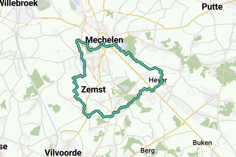 the Schiplaken forest and Castle Terlinden to reach Elewijt. From there, you follow the Zenne downstream, and through the provincial area Vrijbroekpark, you return to Mechelen.