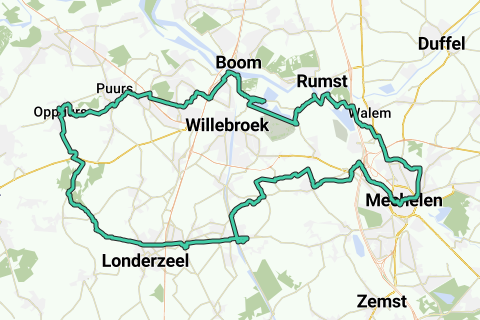 Route to Mechelen along quiet, low-traffic country roads.