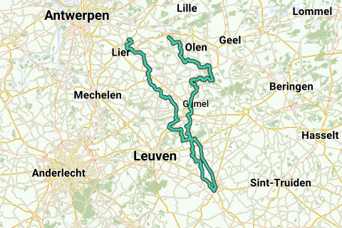 At the start, you see the football field of F.C. De Kampioenen. Then the route leads to Tienen.