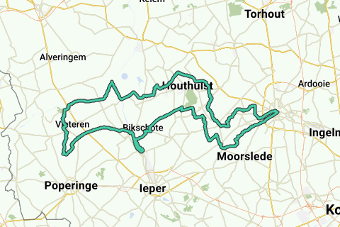 Discover all benefitsAll sporting distances leave Roeselare via Oostnieuwkerke towards Westrozebeke. You cycle towards the rural, undulating landscape of central West-Flanders towards the 'Keuneleute' and 'Stadenberg'. Via Houthulst and Merken you reach the 'Ieperleekanaal'.
