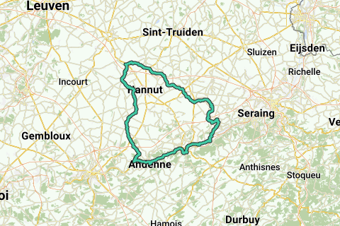 Spicy ride through the lovable Haspengouw: villages where time has stood still, stunning views of the Meuse Valley and the Condroz, cycling on the dike paths along the Meuse, challenging climbs, 2 beautiful Meuse towns: Huy and Andenne. All this on predominantly low-traffic roads or car-free bike paths (Ravel 1 and Ravel 147). This bike tour is a true retreat for all passionate cyclists who have a blood feud against the dangerous bike paths in Flanders, where every ten meters a garage exit, a plot, or a side road constantly puts us in life-threatening situations. On this tour, there’s none of that. Here, one can purely enjoy the beautiful nature and the well-ridable route. However, one should be cautious on the dike path along the Meuse, as there are many places without a fence. Parking is available in Linsmeau (Linsmeel is a district of 1357 Heylissem) around the large chapel on rue du Centre. This bike tour has no specific signage.