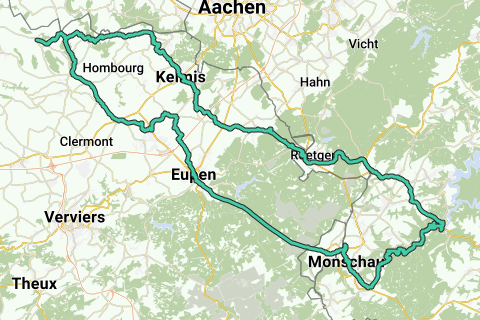 S.M.V. - De plank – Sippenaeken – Terstraten – Völkerich – Moresnet-Chapelle – Kemis – Hergenrath – Astenet – Walhorn – Belven – Neudorf – Botz – Petergensveld – Vennbahn – Waldsiedlung – Lammersdorf – rollesbroich – Kesternich – seifenauel – rauchenauel – Dedenborn – Hammer – Widau – “Widauer Mauer” – Rohren – Höfen – Heidgen – Monschau – Eupen – Rabotrath – Welkenraedt – Ruff – Henri-Chapelle – Merkhof – Hagelstein – De Plank – S.M.V.