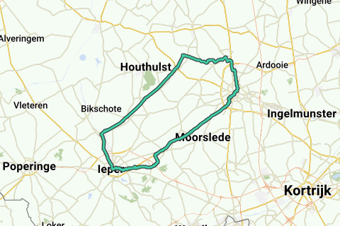 Loop-shaped route from Roeselare via Hooglede and the old railway bed Torhout-Ieper to Ypres. Then back to Roeselare via Zonnebeke along the old railway bed Ypres-Roeselare.