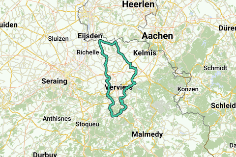 S.M.V. – S.G.V. – Warsage – Aubin-Neufchateau – Berwijnvallei – Val-Dieu – Charneux – Herve – Les Bruyères – Grand-Rechain – Tribomont – Wegnez - Pepinster – Oneux – Marché – Spa – left Annette and Lubin – Spaloumont – Arbespine – Tiège – Polleur – left Rue Xhavée – right Jehanster – left Rue Boverie – cross – left Rue Beau-Vallon – turn right to Secheval – left, cross Rue Mariomont – Stembert – Hévremont – Goé – Limburg – Bilstain – right up – always straight ahead – Heggen – left towards Welkenraedt – left towards Henri-Chapelle – Merckhof – Hagelstein – De Plank – S.M.V.