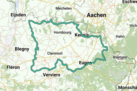 Teuven – Beusdael – Sippenaeken – Gemmenich – Moresnet-Chapelle – Kelmis – Hergenrath – Hauset – Lichtenstein – Raeren – Eupen – Goé – Dolhain – Bilstain – Quatre-Chemins – Andrimont – Dison – Petit-Rechain – Grand-Rechain – Xhendelesse – Herve – Charneux – Mauhin – Neufchâteau – Warsage – S.G.V. – S.M.V. – Ulvend – De Plank – Teuven.