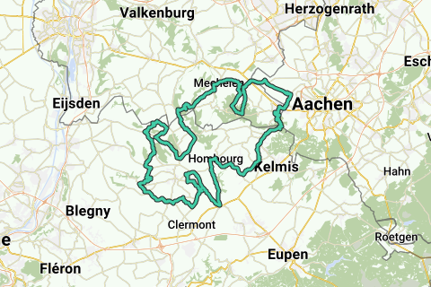 Round trip Voerstreek 2 from Slenaken. Start/finish: large parking on foot Loorberg Slenaken. Elevation difference: Grensweg Slenaken 400 m., max. 10.0%. Dorpsstraat/Kultjen Remersdael (B) 2,400 m., max. 7.0%. Krindaal/de Planck Veurs (W) 1,600 m., max. 10.0%. Zwaen/Brabant/ Rullen St. Pieters-Voeren (W) 1,000 m., max. 14.0%. Les Trixhes Froidthier (W) 900 m., max. 9.0%. Rue de Tilleul (partially) Froidthier (B) 250 m., max. 7.0%. Raer (partially) Aubel (W) 500 m., max. 7.0%. Rue de Merckhof (partially) Aubel (B) 1,400 m., max. 5.0%. Rue de la Station Hombourgh (W) 700 m., max. 15.0%. Rue Les Trois Bornes Gemmenich (W) 2,200 m., max. 6.0%. Schlangenweg Seffent (D) 900 m., max. 9.0%. Mamelisserweg/Vijlenberg/Rugweg Vijlen 3,200 m., max. 8,0%. Leunweg Vijlen 500 m, max. 10.0%. Schweiberg Mechelen 2,700 m., max. 9.0%. In the track also several climbs without name. Altimeters: 1,316. Coffee stop: Grain 'd Orge, Centre 16, Hombourgh (B) (Mon/Tue closed).