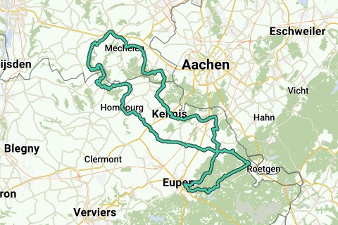 Round trip Wesertalsperre 2 from Slenaken. Start/finish: large parking on foot Loorberg Slenaken. Ascents: Hilleshagerweg/Vijlenberg/Rugweg Mechelen/Vijlen 5,200 m., max. 8.0%. Wolfhaag Vaals Pass 1,900 m., max. 10.0%. Vennstrasse (partially) Neudorf (W) 700 m., max. 7.0%. Rue de Hombourgh Montzen, 2.100 m., max. 7.0%. Rue de Beusdael Sippenaeken (B) 3.400 m., max. 8.0%. Gieveldstraat Teuven (B) 1.500 m., max. 6.0%. In the track also several climbs without name. Altimeters: 1,239. Coffee stop: restaurant Wesertalsperre, Langesthal 164, Eupen (B) (open daily).