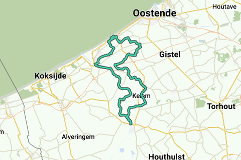 Start Zeedijk, (thv.: Alexandre Ponchonstraat), 8430 Middelkerke, Belgium to Diksmuide, then back towards Nieuwpoort, arrival Zeedijk, via Louis Logierlaan, Middelkerke.