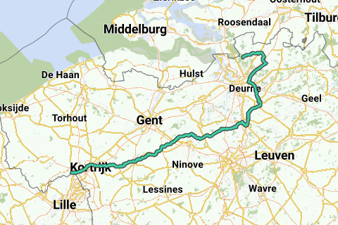 From Region Menen, through Mechelen to Region Kalmthout, not via the usual route (Leie - Ghent - StAnna tunnel)