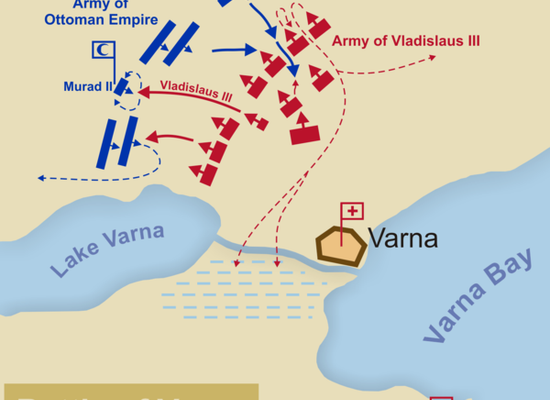 The Battle of Varna took place on 10 November 1444 near Varna in eastern Bulgaria. The Ottoman Army under Sultan Murad II defeated the Hungarian–Polish and Wallachian armies commanded by Władysław III of Poland , John Hunyadi and Mircea II of Wallachia. It was the final battle of the Crusade of Varna.