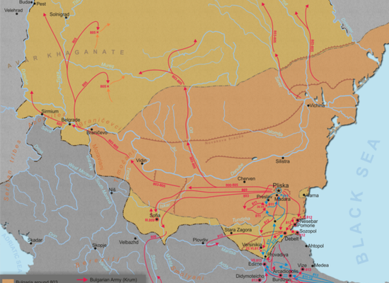 The Battle of Pliska or Battle of Vărbitsa Pass was a series of battles between troops, gathered from all parts of the Byzantine Empire, led by the Emperor Nicephorus I, and the First Bulgarian Empire, governed by Khan Krum. The Byzantines plundered and burned the Bulgar capital Pliska which gave time for the Bulgarians to block passes in the Balkan Mountains that served as exits out of Bulgaria. The final battle took place on 26 July 811, in some of the passes in the eastern part of the Balkans, most probably the Vărbitsa Pass. There, the Bulgarians used the tactics of ambush and surprise night attacks to effectively trap and immobilize the Byzantine army, thus annihilating almost the whole army, including the Emperor. After the battle, Krum encased the skull of Nicephorus in silver, and used it as a cup for drinking. This is one of the most documented instances of the custom of the skull cup.