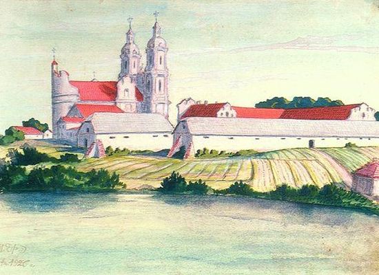The Basilian Church of St Peter and Paul and Monastery in Berezwecz was a historic sacred structure in what is today Hlybokaye, Belarus. The church and monastery began with a foundation in 1637 by Joseph Korsak, the voivode of Mścisław. Run by the Order of Saint Basil the Great, the church and monastery were rebuilt in 1750-67 according to a design by Johann Christoph Glaubitz. A widely admired example of Vilnian Baroque the structure's facade was constructed of nine convex and eight concave surfaces.