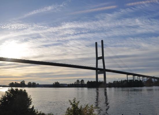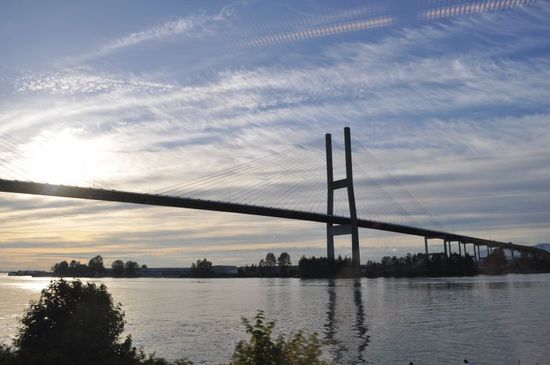 The Alex Fraser Bridge (also known as the Annacis Bridge) is a cable-stayed bridge over the Fraser River and connects Richmond and New Westminster with North Delta in Greater Vancouver, British Columbia. The bridge is named for Alex Fraser, a former B.C. Minister of Transportation who died of throat cancer.