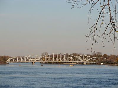 This bridge spans the Rivière des Prairies between the Montreal borough of Ahuntsic-Cartierville and the Laval neighbourhood of Chomedey.