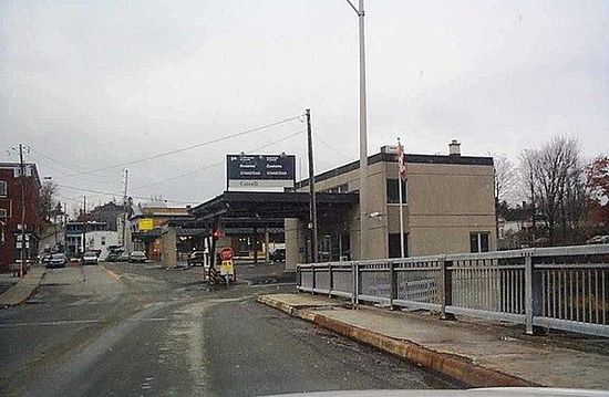 This border crossing is located between the villages of Derby Line, Vermont and Stanstead, Quebec, both of which are developed up to the border. The two villages have a historically friendly relationship with one another, and there were several roads east of the U.S. 5-Quebec 143 crossing that once crossed the border, but have been barricaded since 2009. The cross-border relationship was cemented in part by the construction in 1904 of the Haskell Free Library and Opera House, which straddles the border and provides library services to both communities. The border itself is an east-west line, with a portion of the Tomifobia River running east-west just to its north. The bi-national nature of these two villages has always presented border security challenges, and in recent years local residents have been prohibited from moving freely from one side to the other. Prior to the September 11 attacks, anyone could enter the United States using any of the roads, as long as they then proceeded directly to the nearest port of entry to report. Since then however, cross-border travel between the villages on any road other than U.S. Route 5 or I-91 is strictly prohibited.