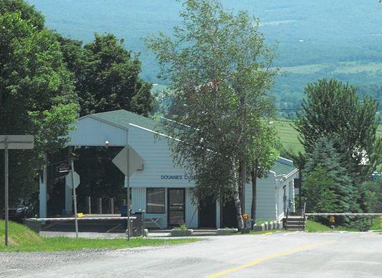 The border crossing is one of the least busy in Vermont, with three to 20 cars using it a day. For many years, there were no border inspection services at this location. Finally in 1971, the US built a border inspection station. Canada built its border station in 1982, rerouting Chemin de la Frontiere around it. US station is open 24/7 while the Canadian Side is only open from 8AM to 4PM.