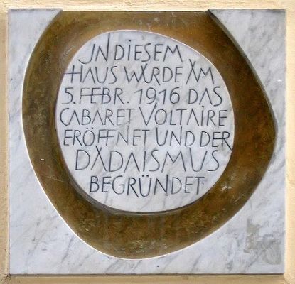 Cabaret Voltaire was the name of an artistic nightclub in Zürich, Switzerland. It was founded by Hugo Ball, with his companion Emmy Hennings, in the back room of Holländische Meierei, Spiegelgasse 1, on February 5, 1916, as a cabaret for artistic and political purposes. Other founding members were Marcel Janco, Richard Huelsenbeck, Tristan Tzara, and Sophie Taeuber-Arp and Jean Arp. Events at the cabaret proved pivotal in the founding of the anarchic art movement known as Dada.