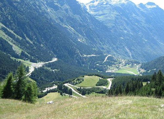 The Valle Mesolcina, also known as the Val Mesolcina or Misox , is an alpine valley of the Grisons, Switzerland, stretching from the San Bernardino Pass to Grono where it joins the Calanca Valley. It is the valley formed by the river Moesa.