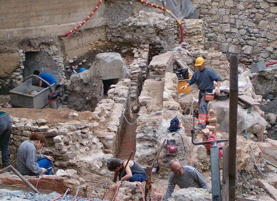 The hot springs, located at a bend in the Limmat river near the legion camp at Vindonissa , were discovered around 20 AD. The hot , mineral rich water was prized by the Romans and a settlement quickly developed around the springs. By the middle of the 1st century a good sized settlement surrounded the mineral baths. In 69 AD, during the Year of the Four Emperors, the XXI Legion burned the wooden vicus or settlement to the ground. Aquae Helveticae was rebuilt in stone in the following years. When the legion abandoned Vindonissa in 101, the local economy shrank. However, by the second half of the 2nd century the settlement experienced another golden age. During this time, pottery and bronze from Aquae Helveticae were traded throughout the region. During the 3rd century a series of invasions by the Alemanni led to the settlement being abandoned. However, the baths continued to operate. In the 4th century a defensive wall was built around the baths and coins continued to be minted in Aquae Helveticae.
