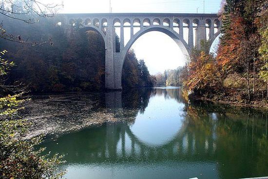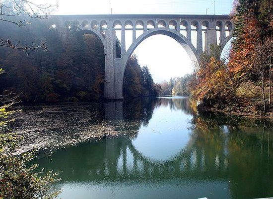 The Le Day viaduct is a railway viaduct in Vallorbe in the Jura-Nord vaudois District of the Swiss canton of Vaud. It stands near the hamlet of Le Day and crosses the Orbe. This has been dammed since 1955 by the Le Day dam , which lies 450 m downstream.