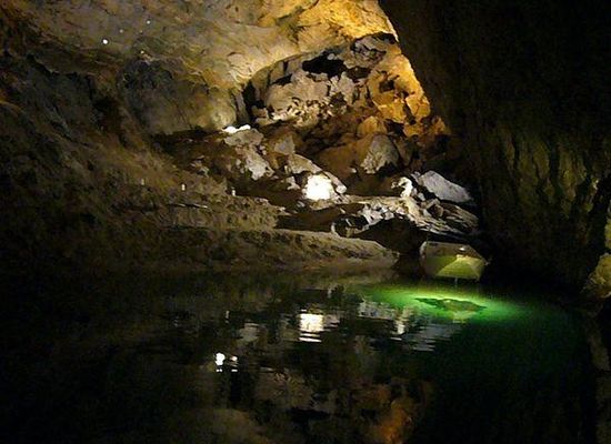 Saint-Léonard underground lake is located at Saint Léonard in the canton of Valais, Switzerland. It is formed where a bed of Triassic gypsum, emplaced within impervious Carboniferous strata, has been dissolved by groundwater. With a length of 300 and a width of 20 m it is the largest underground lake in Europe. It was discovered in 1943 by Jean-Jacques Pittard. Prior to 1946 the water-level was much higher, but an earthquake with a force of 5.6 on the Richter-scale opened additional fissures in the cave on January 25, 1946 made it more readily navigable. Its water is constantly at 11 °C . The lake is accessible by the public since 1949. Visits are organized daily from March 15 to November 1, from 9 am to 5 pm. The visit is about half an hour long, and is held in English, French, German and Italian. Ticket-prices are 10 CHF for adults and 5 CHF for children.