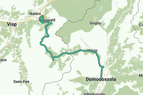 This is the part of CHE over the Simplon Pass (see Ride2Rome group) to Italy. Alternatively, you can take the train through the Simplon Tunnel, which provides an (easier) alternative to the hardest part of this process.