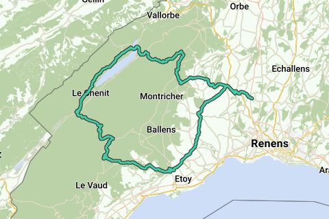 Penthaz-Penthalaz-Cossonnay-L'Isle-Col du Mollendruz-Le Pont-Le Lieu-Le Chenit-Col du Marchairuz-St Georges-Gimel-Aubonne-Yens-Cottens- "Return to the start on the same road"