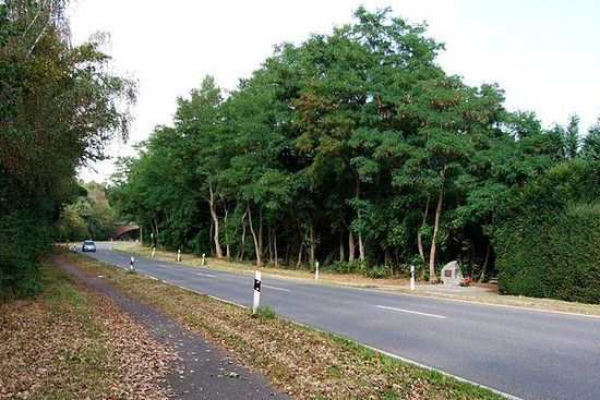 The Grenzlandring, to many foreigners also known as Wegbergring or Wegberg-Ring, is told to be "discovered" nearly undamaged after World War II when during one dark night in 1947, Dr. Carl Marcus, town mayor of nearby Rheydt, drove along a more or less straight looking country road. When he passed a bicycle rider more than once, he suddenly realized that this road must be a full circle. In fact, a 9 km long and 6.8 m wide egg-shaped concrete ring road had been built before World War II around Wegberg and the neighboring village of Beeck and completed in 1938 or 1939, at total cost of about 3.3 million Reichsmark. As it was intended for military purposes, the construction had not made been public nor was the road shown on maps. This story today is considered part of a marketing strategy since parts of the ring had been used by US and British military immediately after the war and had in no way been unknown.