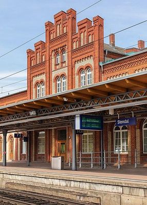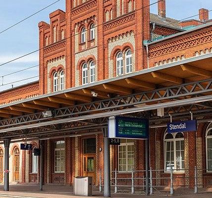 Stendal is a railway station in the town of Stendal, Saxony-Anhalt, Germany. The station lies on the Berlin-Lehrte railway, Hanover–Berlin high-speed railway, Magdeburg-Wittenberge railway, Stendal–Uelzen railway, Stendal-Tangermünde railway and Stendal–Niedergörne railway. It is an important railway hub for regional trains and is also used by Intercity and Intercity-Express trains regularly. Until the winter 2012 timetable Stendal station was only by Deutsche Bahn trains. Since December 2012, the station has also been served by some services operated by Ostdeutsche Eisenbahn. It is classified by Deutsche Bahn as a category 3 station.