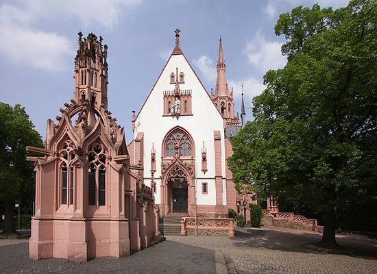 The first building, dating to the plague year of 1666, was destroyed during the campaigns of 1795 in the French Revolutionary Wars of the Rhine valley. The second was built 1814 in the wake of a typhoid fever epidemic brought by soldiers returning from the Battle of Leipzig of the Napoleonic Wars. Goethe wrote a description of its dedication ceremony. This building's flèche was hit by lightning in 1889 and the chapel burned down to the brickwork.