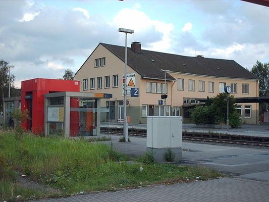 The station building has been closed and converted into a hotel for cyclists and a bicycle parking facility. Since 2009, Deutsche Post has erected a Packstation here. The ticket office has been replaced by a ticket machine. Previously there was a freight yard, part of which is now used for supermarket parking and the rest for station parking.