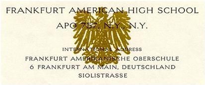 Frankfurt American High School was a Department of Defense Dependents Schools system school located on what was once known as the Abrams Complex in Frankfurt Germany. One of DoDDS original six high schools in Germany, the school served the children of American military, government and civilian personnel from 1946 until its closing in 1995. Originally known as the "Maroon Raiders", the "Eagle" was adopted as the school's mascot during the 1948-49 school year. The school's colors are black and gold. The motto is "Eagles Über Alles."