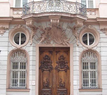 The architect François de Cuvilliés built the mansion between 1733 and 1737 for Sophie Caroline von Ingenheim, Countess Holnstein, a mistress of Charles VII, Holy Roman Emperor. It is today Munich's best rococo style palace as Cuvilliés' less conventional Palais Piosasque de Non was destroyed in World War II. The Holnstein Palace is designed as a four-winged building around a courtyard. The front house was used for representative purposes, while the rear building represented the privacy of the Count. The building is the only noble palace in Munich that kept the original layout. The rococo façade and many interiors have been preserved in their original state.