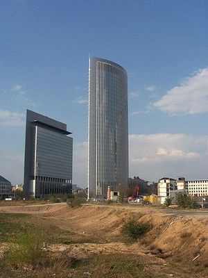 Kastor und Pollux, also known as Forum Frankfurt, are two high-rise buildings in the Gallus district of Frankfurt, Germany. The twin towers, which are 22 and 33 floors, respectively, were named after Castor and Pollux, the Dioscuri of Greek and Roman mythology.