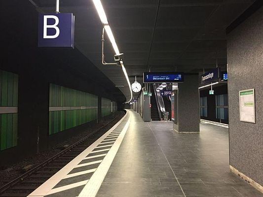 The station was opened with the first section of the Frankfurt City Tunnel in May 1978. It consists of two tracks, surrounding a central platform.