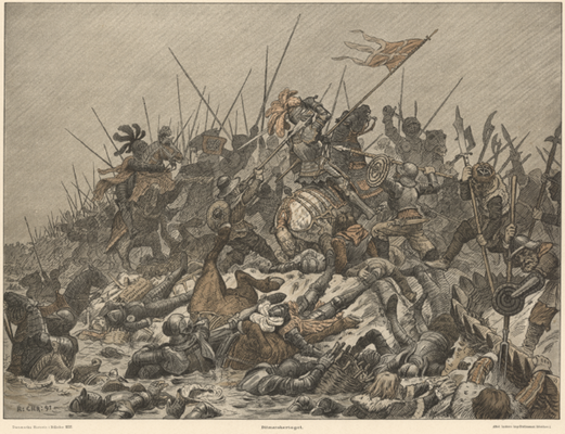 The Battle of Hemmingstedt took place on 17 February 1500 south of the village of Hemmingstedt, near the present village of Epenwöhrden, in the western part of present-day Schleswig-Holstein, Germany. It was an attempt by King John of Denmark and his brother Duke Frederick, who were co-dukes of Schleswig and Holstein, to subdue the peasantry of Dithmarschen, who had established a peasants' republic on the coast of the North Sea. John was at the time also king of the Kalmar Union.