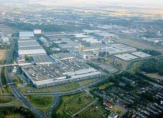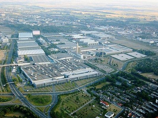 The Hanover Fairground is an exhibition area in the Mittelfeld district of Hanover, Germany. Featuring 392,453 m² of covered indoor space, 58,000 m² of open-air space, 24 halls and pavilions and a convention centre with 35 function rooms, it is the largest exhibition ground in the world.